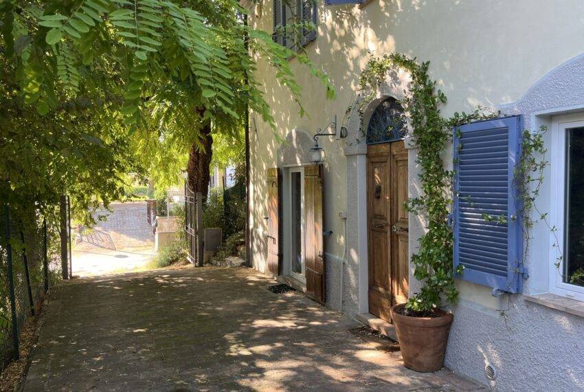 Montefelcino is a charming little town of medieval origin. The surrounding area offers plenty of opportunities to enjoy nature, arts and culture. From stunning trekking trails to castles, fortresses and Medieval villages, one is spoiled for choice. Casale Colori is located in Montefelcino, a twenty-minute drive from the sea and the buzzing sea town of Fano. The property was completely renovated in 2009 maintaining many of the old features such as the terracotta floor, wooden beams and ceilings tiles. The 1,100 sqm garden is fully fenced. The ground floor consists of two large living rooms, fireplace, a large kitchen, laundry room and bathroom. Heating is with pellet stove and LPG cylinder. The house has wireless alarm system.