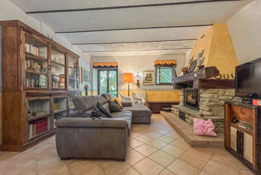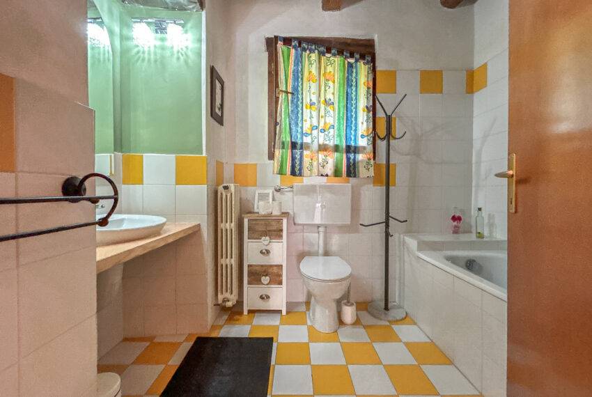 The farmhouse is on 2 levels, the ground floor includes a large living room with a fireplace and a dining room with open-space kitchen.