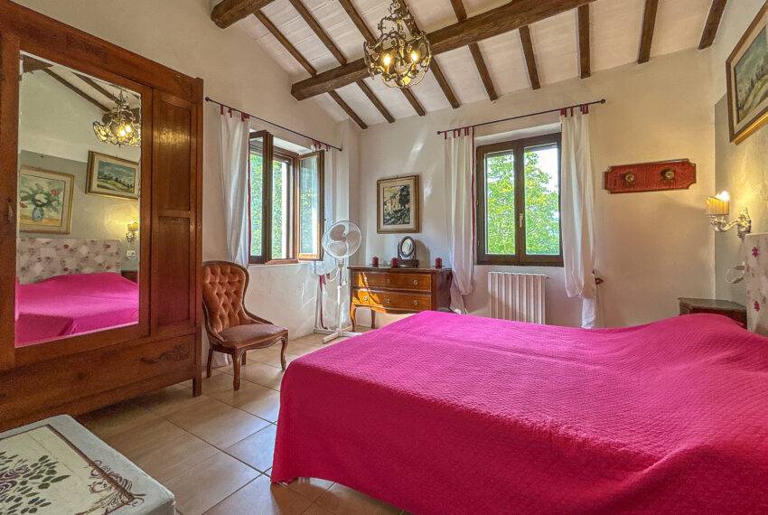 Casale Sant’Elena is a marvellous farmhouse nestled in the fields and woods of Serra San Quirico and a stone's throw from Angeli di Rosora village. The property was completely rebuilt in 1995 and is located in a true corner of paradise, concealed from the road, and surrounded by hills and lush woods. To top it up, a short path through the woods leads to the local farm producing organic olive oil and wine. Many fruit trees, herbs and flowers live in the 2,500 sqm garden. A private well provides water for automatic irrigation during the summer months. The large house porch looks onto a stylish swimming pool with Roman steps.