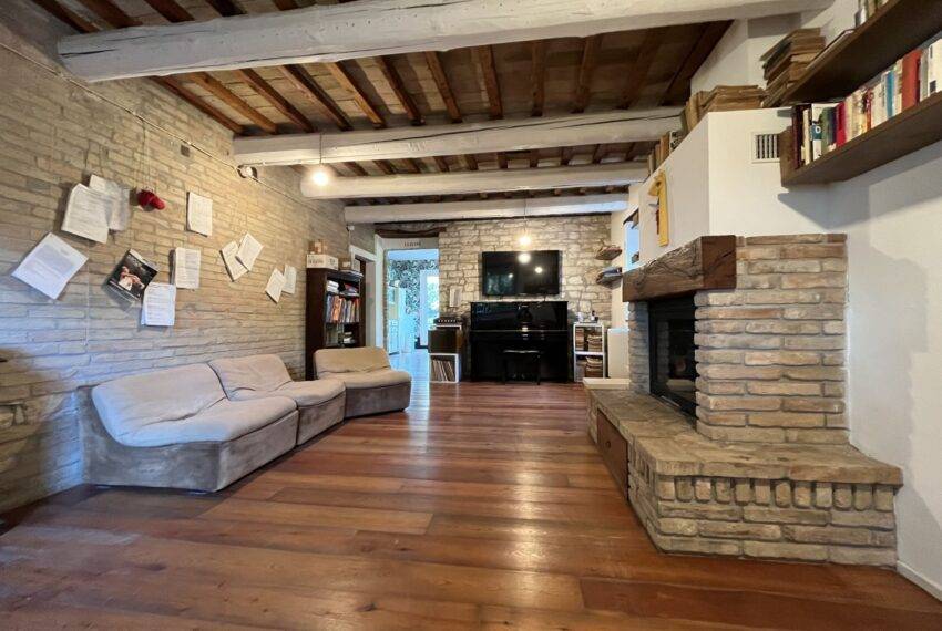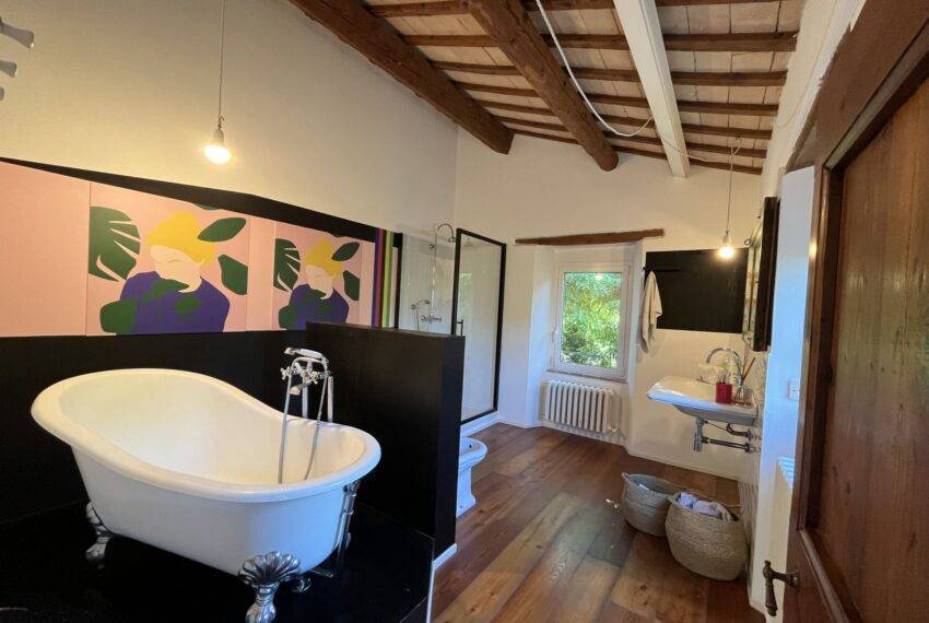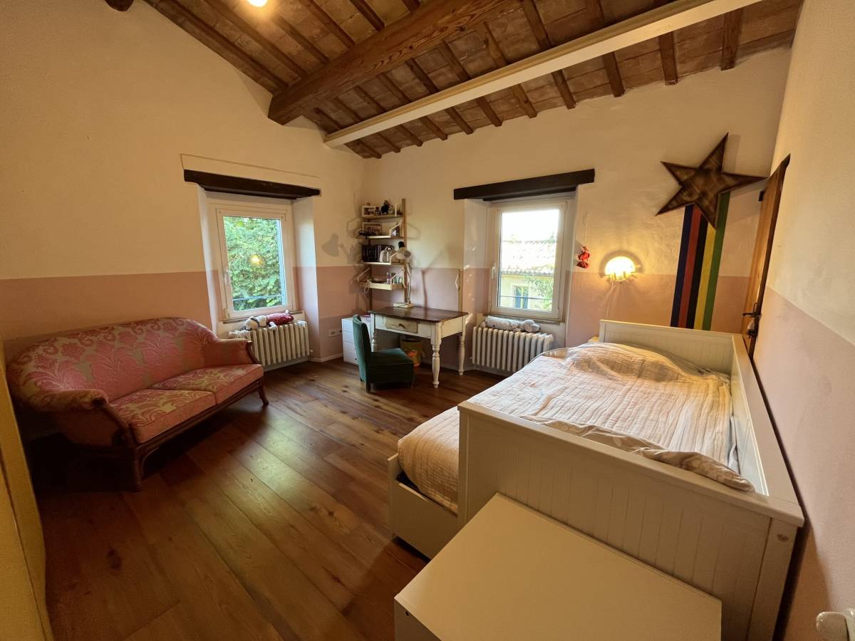 Montefelcino is a charming little town of medieval origin. The surrounding area offers plenty of opportunities to enjoy nature, arts and culture. From stunning trekking trails to castles, fortresses and Medieval villages, one is spoiled for choice. Casale Colori is located in Montefelcino, a twenty-minute drive from the sea and the buzzing sea town of Fano. The property was completely renovated in 2009 maintaining many of the old features such as the terracotta floor, wooden beams and ceilings tiles. The 1,100 sqm garden is fully fenced. The ground floor consists of two large living rooms, fireplace, a large kitchen, laundry room and bathroom. Heating is with pellet stove and LPG cylinder. The house has wireless alarm system.