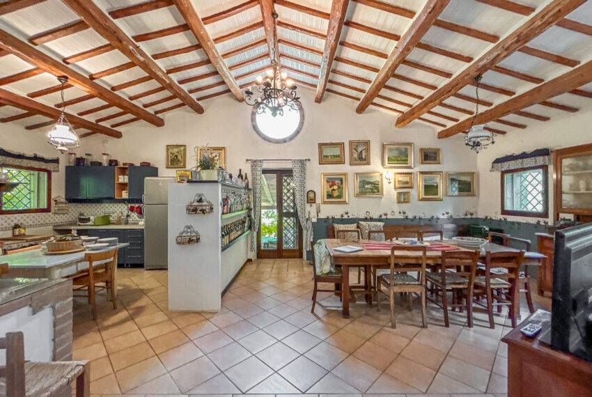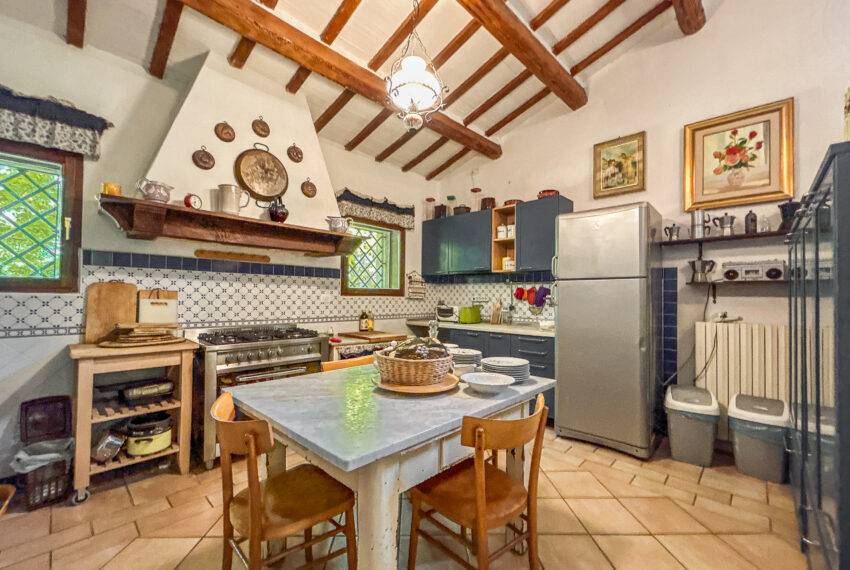 The farmhouse is on 2 levels, the ground floor includes a large living room with a fireplace and a dining room with open-space kitchen.